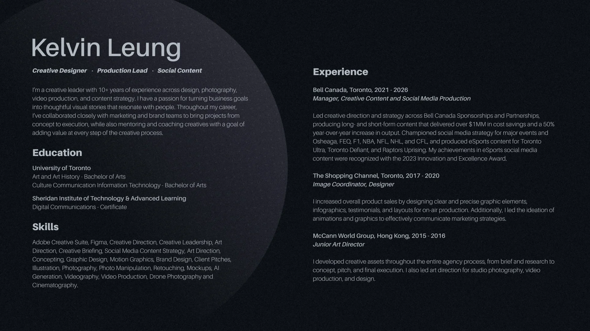 Kelvin Leung - Creative Director - Production Lead - Social Media